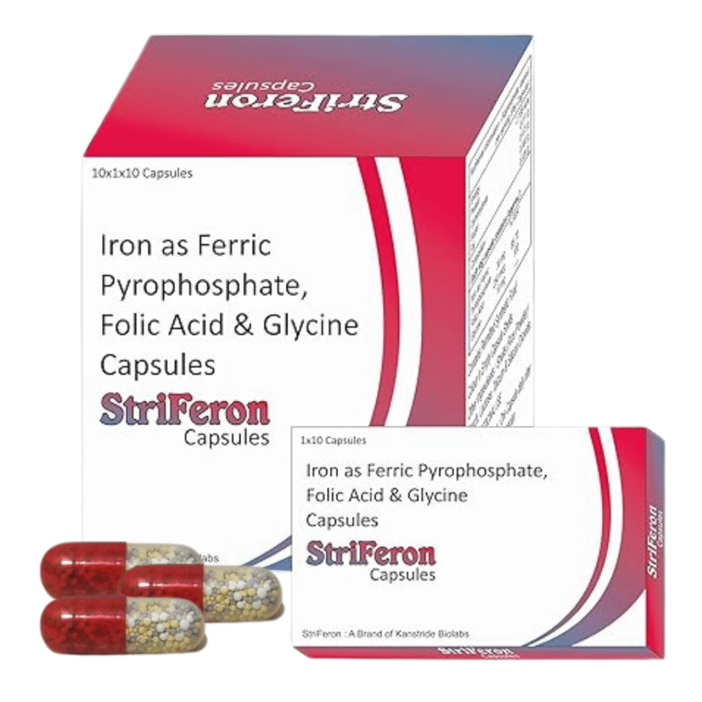 StriFeron Capsules – Iron, Folic Acid & Glycine to boost energy, support pregnancy, and enhance absorption